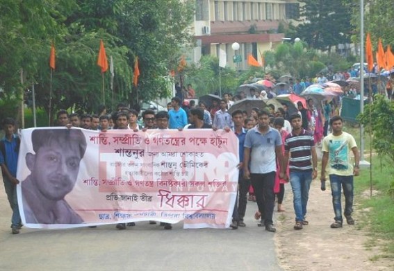 Tripura University students, professors, staffs have condemned on Santanu's barbaric murder that took place at Mandai on Sep-20 in a political clash among CPI-M and IPFT.