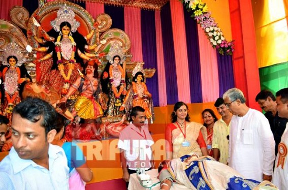 Generally CM Manik Sarkar denies to go in such occasion due to his Communist policies various protocols but as election is knocking the door Sarkar was found on Sunday busy in pandal inaugurations.