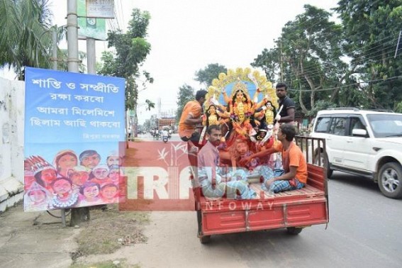 Only 1 days left for Durga Puja-2017 and club members are now busy in final preparations. Maximum clubs in Agartala are carrying Durga idols on Sunday as it's Choturthi.