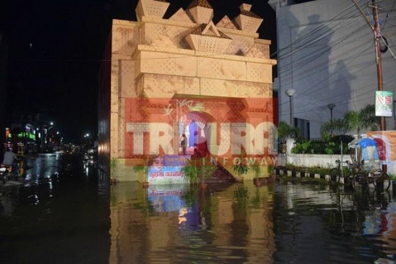 AGARTALA, Sep 29 (TIWN): When cloudy weather, slight showers have already marred the Durga puja celebration, the AMC led corruption has fueled the irritation of common people further. A chaos had been created all over the City on Astami night when rain showered for half an hour led the common people to suffer heavily with knee level water. Durga Pandals had gone under water at Agartala with few splashes of rains on the evening of Maha-Astami. This was not a record level raining, neither it was a continuous rain but the corruption of AMC has finally ashamed Agartala’s Durga puja. In other subdivisions also rain was held but no place have faced similar fate as Agartala City. The fastest flooding zone of India is nowhere but at Tripura’s capital city Agartala.