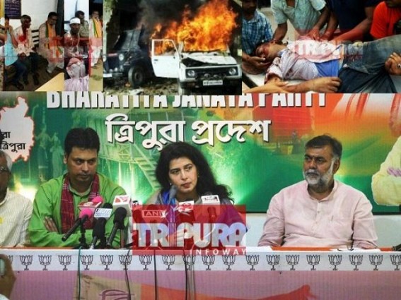 AGARTALA, Nov 12 (TIWN): On the 1st press meet with Tripura media, MP MP Saroj Pandey, MP Prahlad Singh Patel at BJP Office have slammed the CPI-M Govt for 'paralyzing law and order in the state, launching violence and suppressing the justice'. MP Saroj Pandey in her first ever address to the press said, "The Govt which can not secure the democracy is not at all a Govt and Tripura's CPI-M Govt which is ruling state for 25 years has totally collapsed the law and order here. Justice is suppressed just to save the Communist face"."Chief Minister Manik Sarkar since 20 years of his Chief Ministry instead of developing the state is trying to portray his own image with a wise look. To save the Manik Sarkar's face, from police to justice system all have been paralyzed under CPI-M", said Pandey."Our ideology, developmental attitudes both are struggling as the Chief Minister is struggling to portray his own image", added Pandey.