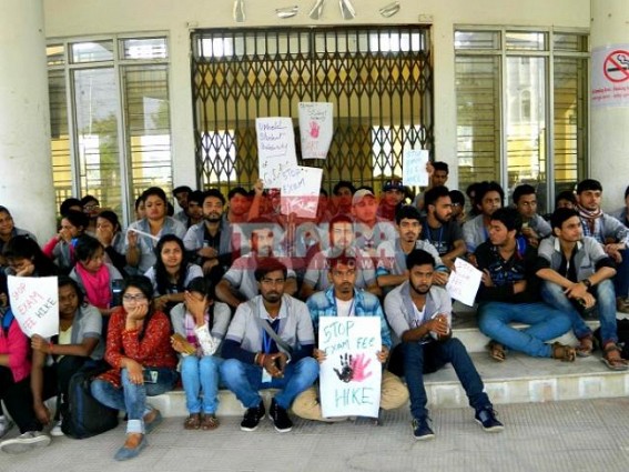 AGARTALA, Nov 24 (TIWN): Art College Students sat in protest against the exam-fee hikes on Friday.