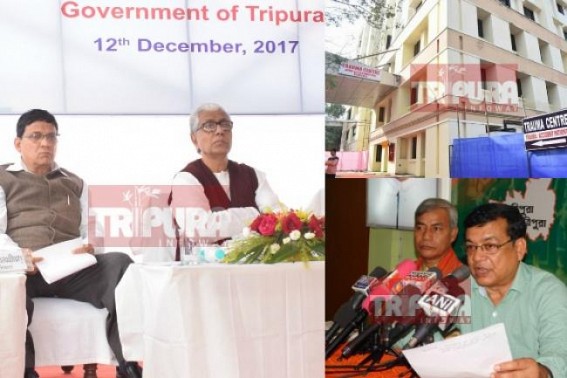 AGARTALA, Dec 14 (TIWN): With another shocking note, CPI-M Govt after 24 hours of trauma centre's inauguration declared that CM Manik Sarkar has inaugurated not any trauma centre, but trauma care centre. Addressing a press meet, BJP Spokesperson Ashok Sinha said, "When Chief Minister Manik Sarkar during his speech had declared that it's trauma centre, today once again state govt is saying it's trauma care centre ?' On the other side even after trauma centre's inauguration today also one patient had to send Kolkata for treatment. The BJP spokesman asked further, "Is there any Govt existing in Tripura ? Who is lying? CM or his officer ? The State Govt itself confused whether it's a trauma centre or a trauma care centre".Just 3 months ahead of Election, even though many hospital buildings are inaugurating by the CPI-M Govt, but hardly there is any chance for service.