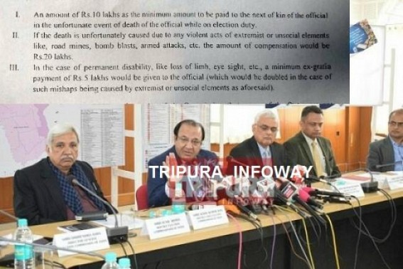 AGARTALA, Jan 20 (TIWN): After contractual SSA Teachers had rejected to do election duty asking what actions to be taken if any person dies during election hours, the Election Commission’s Under Secretary Navin Kumar in a letter told SSA Welfare Secretary Bastab Debbarma that any kind of death is subjected to compensate immediately and it’s the duty of the CEO without sending any letter to Centre. In the letter Navin Kumar wrote that this rules are in action since 2014. This letter has become also an informative document for state govt employees of Tripura and what they or their family members should do if during election duty they meet any accident. The letter says, “The Election Commission already in its instruction of 25.04.2017 has been clarified that the payments of ex-gratia compensation to family of polling personnel, any private person like drivers, cleaners etc in deployment of election dutyâ€.
