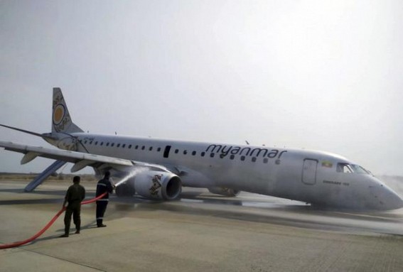 Kyaw San, a spokesman for the airport, said the pilot informed the control tower before landing that he was unable to pull down the nose wheels.