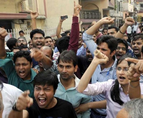 Agitators raised anti-government slogans, alleged negligence on part of the state government and demanded to know why swift action was not taken in the matter.