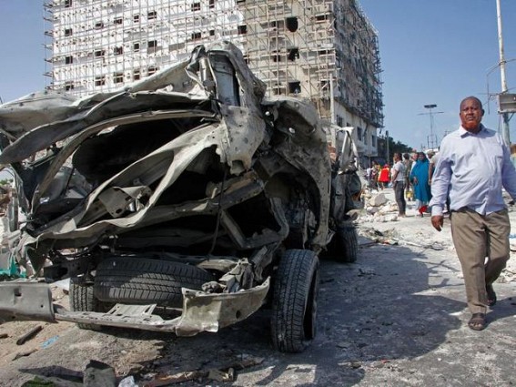The attack occurred between the Afrik hotel, which was damaged, and a checkpoint on the K-4 road leading to Mogadishu''s airport, Efe news reported. Police officer Ali Wiirow told Efe news that he witnessed the attack which occurred in a crowded area and that he saw 11 corpses. Five of the security force members were killed in the attack, including the one in charge of the checkpoint -- Hussein Aanka -- who belonged to Somalia''s National Intelligence and Security Agency. Security forces put up a cordon around the attacked area, where several vehicles lined up to get through the checkpoint were damaged, the report said.