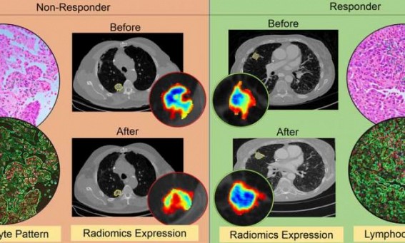 Researchers used AI to find previously unseen changes in patterns in CT scans taken when the lung cancer is first diagnosed compared to scans taken after the first 2-3 cycles of immunotherapy treatment.