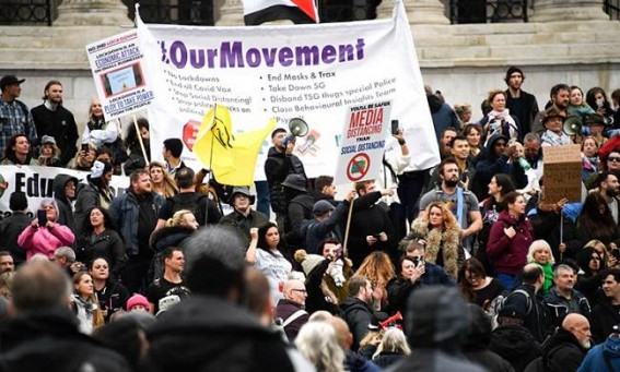 London, Oct 25 (TIWN) At least 18 people were arrested at a protest in London which was staged against the UK government's cornavirus-induced lockdown restrictions, the media reported.