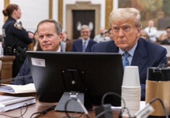 Washington, April 29 : A conviction for former President Donald Trump on any of the 91 criminal charges he is facing across four separate cases will not prevent him from running for the White House but it will cost him the support of a third of his own Republican party voters and Independents, according to polls, and deprive him of his own vote.
